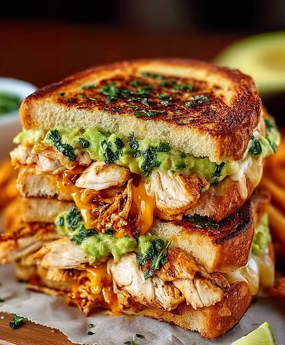 Ce sandwich fusionne poulet effiloché, avocat crémeux et fromage fondant. Un régal chaud et rapide, parfait pour un déjeuner gourmand. Instructions claires et infos nutritionnelles complètes incluses.