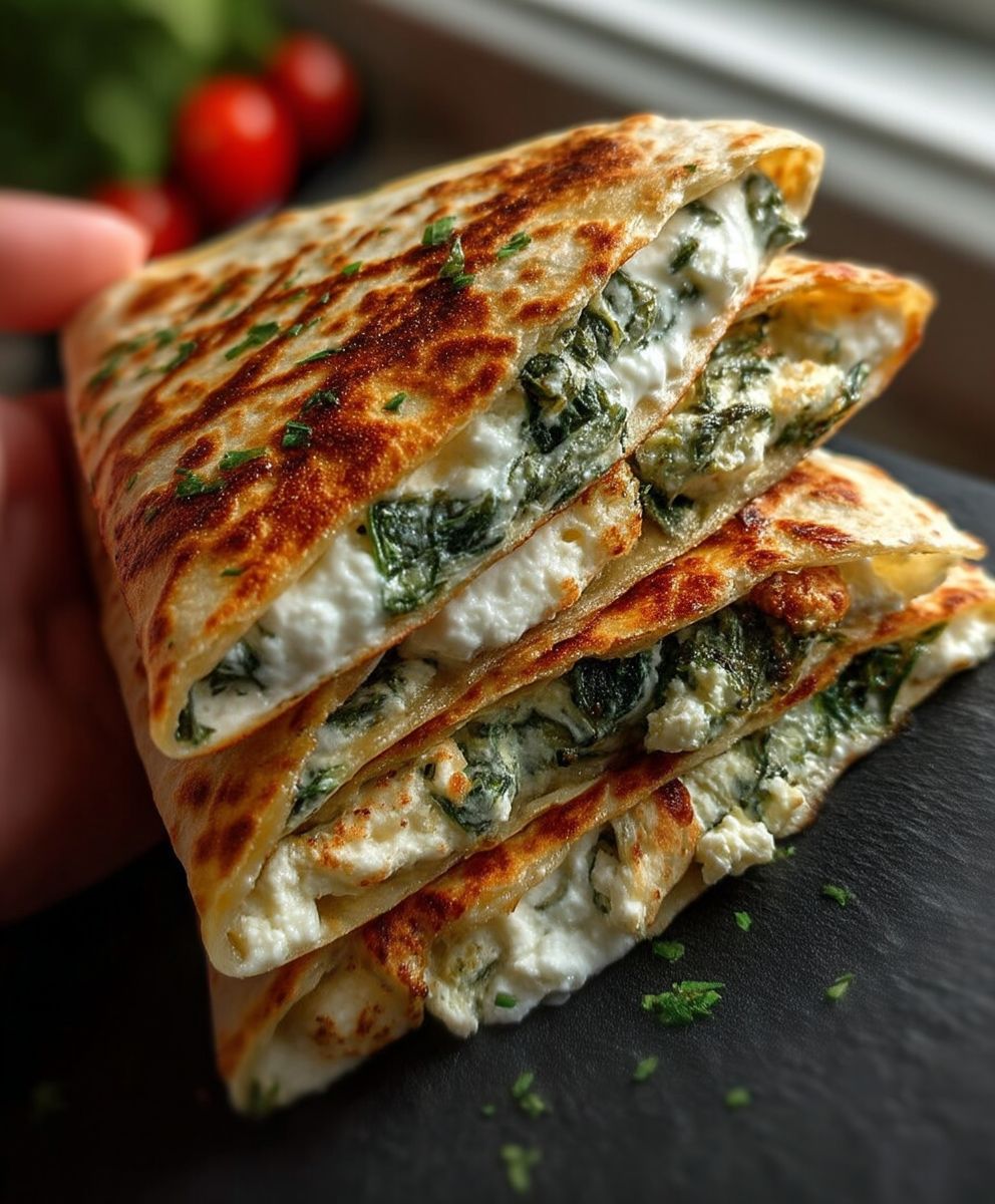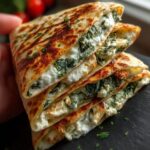 Succombez à nos Quesadillas Méditerranéennes Faciles ! Un mélange vibrant de feta, épinards frais, tomates séchées et fromages fondants, croustillant à souhait.
