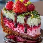 The first time I attempted to bake an Elegant Pistachio Raspberry Crunch Cheesecake, my kitchen looked like a delightful disaster zone, a sweet battleground where vibrant green pistachios and ruby-red raspberries waged a delicious war. This magnificent dessert, with its contrasting textures and harmonious flavors, is truly a showstopper that will captivate any guest. This exceptional dessert is more than just a cake; it is an experience, promising an unforgettable journey for your taste buds, perfect for celebrations or simply elevating an ordinary evening into something extraordinary.