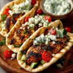 Si vous souhaitez explorer davantage les possibilités offertes par ces tacos, n’hésitez pas à les agrémenter de quelques extras. Un peu d’houmous maison étalé sur la tortilla avant d’ajouter le poulet peut ajouter une couche de saveur crémeuse et terreuse. Des poivrons rouges rôtis ou des courgettes grillées peuvent également être de merveilleux ajouts, apportant une douceur fumée et une texture supplémentaire. Pour ceux qui aiment un peu de piquant, une pincée de flocons de piment rouge dans la marinade ou une touche de sauce harissa dans le yaourt grec peut faire des merveilles. Ces tacos se marient également très bien avec une salade grecque fraîche, garnie d’une vinaigrette légère au citron et à l’huile d’olive. Un riz pilaf aux herbes, ou même une simple salade de couscous perlé, peuvent compléter le repas en offrant une base satisfaisante. Pour une touche encore plus gourmande, proposez un bol de tzatziki maison à côté, pour ceux qui aiment tremper leur poulet ou leurs légumes. Les options sont infinies, et c’est ce qui rend la cuisine méditerranéenne si excitante !